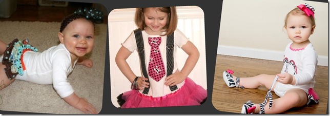 Cutie Bootie Boutique does custom onesies with ties and suspenders for lil boys and ones with ruffled bottoms for little girls. She will also make matching sibling outfits too. Along with all that, the shop carries cute shoes and matching bows. I would have totally gotten that chandi onesie below if we were having a girl!