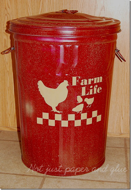 Tammy makes some of the most amazing scrapbook pages and cards, but like her blog says, she isn’t just about paper and glue. She also does some fun DIY and thrifty projects like this galvanized trash can into dog food container!